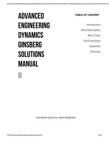Download ADVANCED ENGINEERING DYNAMICS GINSBERG SOLUTIONS MANUAL PDF BookBoon
